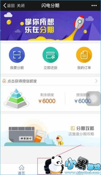 1、打开闪电分期在主页面点击扫一扫的按钮;