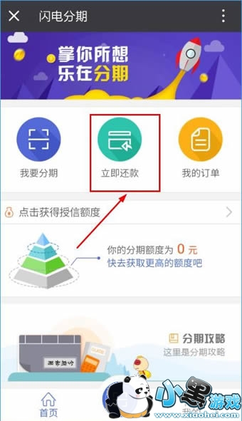 1、打开闪电分期首页,点击我要还款;