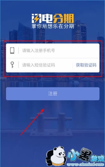 1、打开闪电分期GO,首先需要进行注册,输入手机号和手机验证码即中可注册完成;