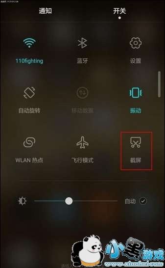 打开荣耀V8需要截屏的界面,然后用手指屏幕向下滑动调出通知栏下拉屏幕,然后切换到【开关】选项,点击下方的【截屏】即可快速截图,如下图所示。