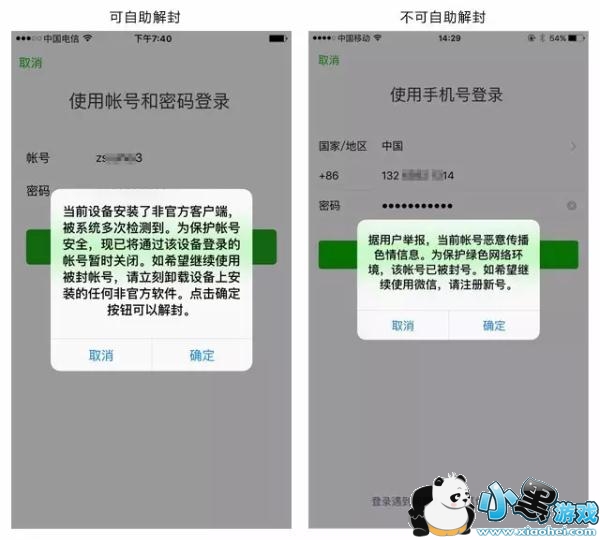 “微信封号”会根据情节严重程度进行处罚,分为可自主解封和不可自主解封两种,如下图: