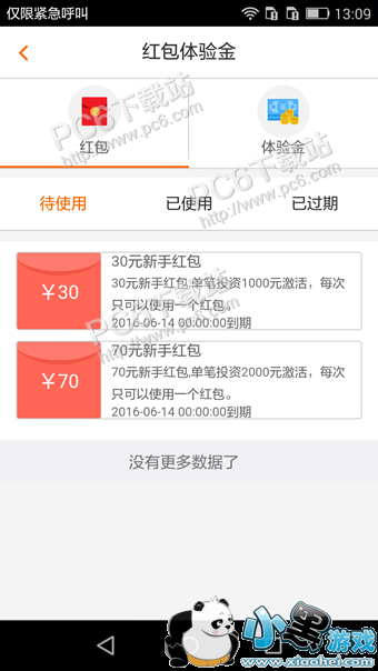 2、在红包体验金的详情页面中用户即可看到30元和70元的新手红包;