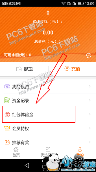 1、打开小宝金融APP,进入我的页面,点击红包体验金;