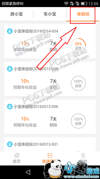 1、打开小宝金融app,进入到优选理财页面中的体验标页面,选择正在进行的小宝体验标;