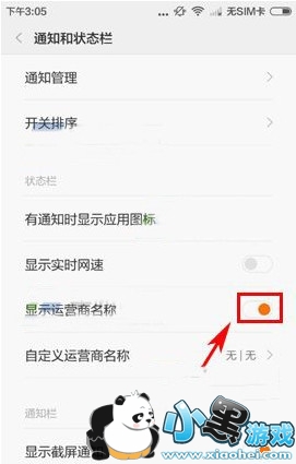 2.打开后我们再把【显示运营商名称】那栏右边的椭圆往左拉关闭即可。