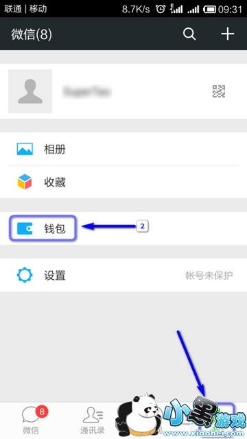 1、打开微信,点击“我”,然后点击“钱包”: