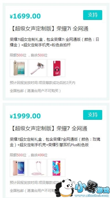 2005年,湖南卫视选秀节目《超级女声》横空出世,造就了李宇春、张靓颖、周笔畅等明星。阔别十年,2016年超级女声以及正式启动。与此同时,华为荣耀也在淘宝众筹上线了超级女声定制版手机,共分为两款:荣耀7i、荣耀7,分别只有500台,价格与官网一致,还赠送超女定制配件。