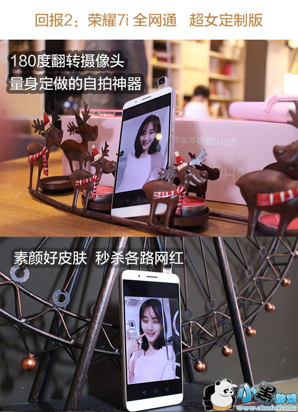 荣耀7i超女定制礼盒:包含荣耀7i 全网通版(颜色:日耀金)+超女定制手机壳+粉色自拍杆,1699元。