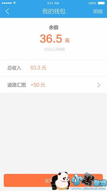 2、在我的钱包中,可以看到自己的总收入,以及具体余额情况,你的收益明细都可以在钱包里进行查看,在最下方点击全部提现即可。