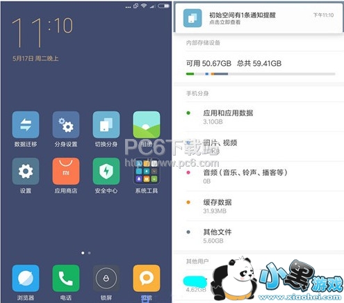 miui8分身系统占手机内存吗?以米4手机为例,我的米4为64G版本【因为手中没有16G版本】只能用64G来演示给大家看。在开启分身之前的内存为50.67GB。开启分身之后仍然是50.67GB,【不是说一点没有占内存】可能是因为我的剩余比较充足分身占的又极少显示不出来。从而可以看出MIUI8分身对于占用手机内存是可以忽略不计的。当然了如果你在第二分身上下载软件或者缓存视频这个就另当别论了。