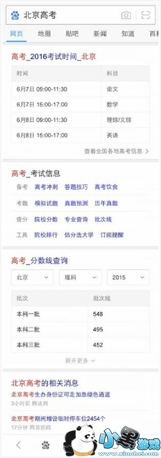 此外,百度搜索对全国几千所高校信息优化,当考生搜索“北京大学”等知名院校时,搜索结果提供大学概况、招生信息,以及该高校历年录取分数线、录取批次,让考生对整体情况有一个清晰的认识;如果考生想对文理科院校有更加全面的了解,可以直接搜索“北京有哪些理工类大学”获得学校排名和地址。