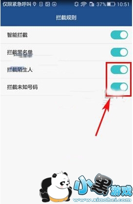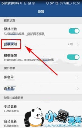 2.然后点击【拦截规则】,最后将【拦截陌生人】和【拦截未知号码】右边的椭圆往右拉打开即可