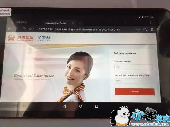 2、待飞行平稳后听到广播,你就可以打开设备,连接海航的网络,在网页上会弹出一个实名认证的框,输入验证信息后即可连接到网络。
