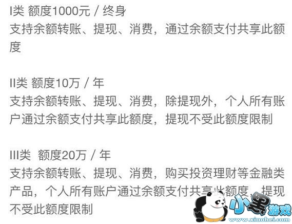 这三类的余额支付额度也是不一样的: