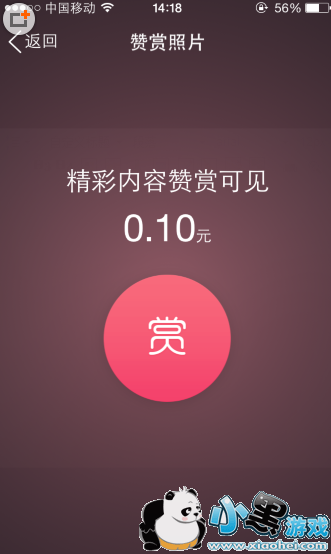 2、系统会提示我们需要支付的金额,在首页上会显示精彩内容赞赏0.10元即可看到,这个时候我们选择“赏”;