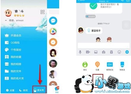2、或者进入好友对话聊天框,点击“+”号后往后滑一屏,点击厘米秀按钮,即可开启厘米秀。