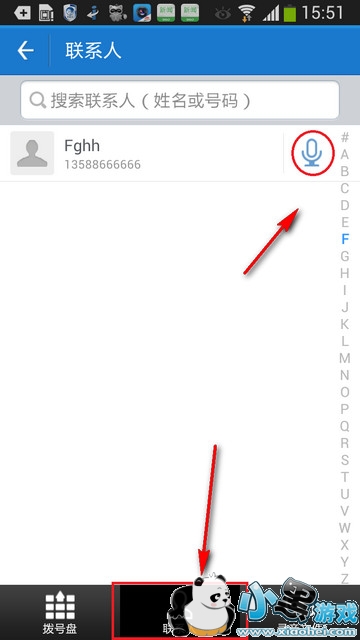 2、使用联系人进行拨号,需点击号码后面蓝色图标即可拨号