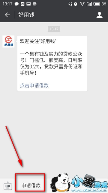 1、搜索“好用钱”微信公众号,关注并进入