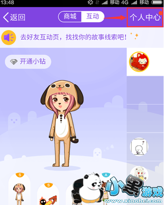 接收完毕邀请的小伙伴就可以使用厘米秀,进入商城可以使用免费的服饰和人物,也可以开通小钻享受尊贵身份。