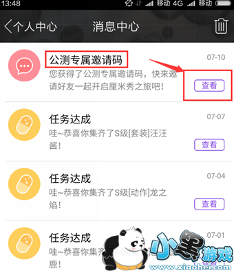 进入到厘米秀的世界,我们手指轻轻点击右上角的【个人中心】,就查看我们的【消息】,专属邀请码就在这里找到,点一下右侧的【查看】进入邀请界面。