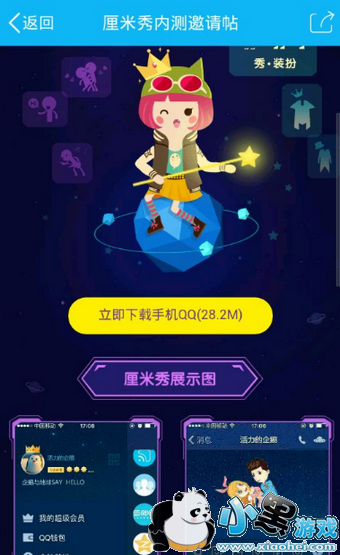 4、点击下方的参与内测即可下载新版厘米秀QQ 点击邀请有礼邀请5个好友即可获得3个月QQ小钻体验资格