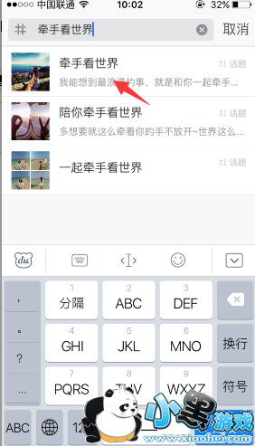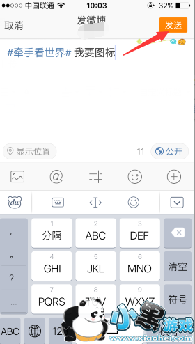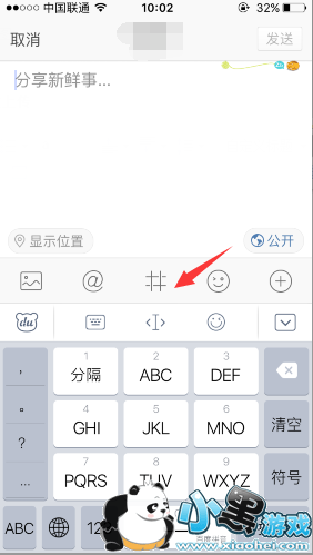 然后就进入到了发微博的页面了,中间是直接打字的,勾选“#”