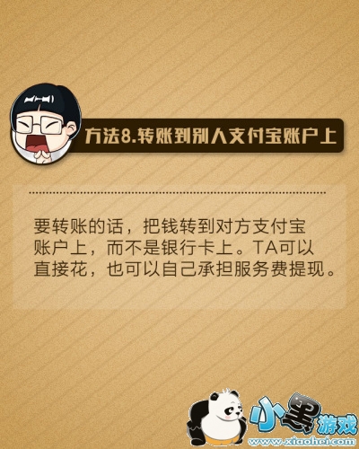 要转账的话,把钱转到对方支付宝账户上,而不是银行卡上。TA可以直接花,也可以自己承担服务费体现。
