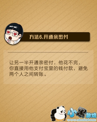 让另一半开通亲密付,他花不完,你直接用他支付宝里的钱付款,避免两个人之间转账。