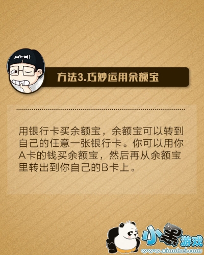 用银行卡买余额宝,余额宝可以转到自己的任意一张银行卡。你可以用你A卡的钱买余额宝,然后再从余额宝里转出到你自己的B卡上。