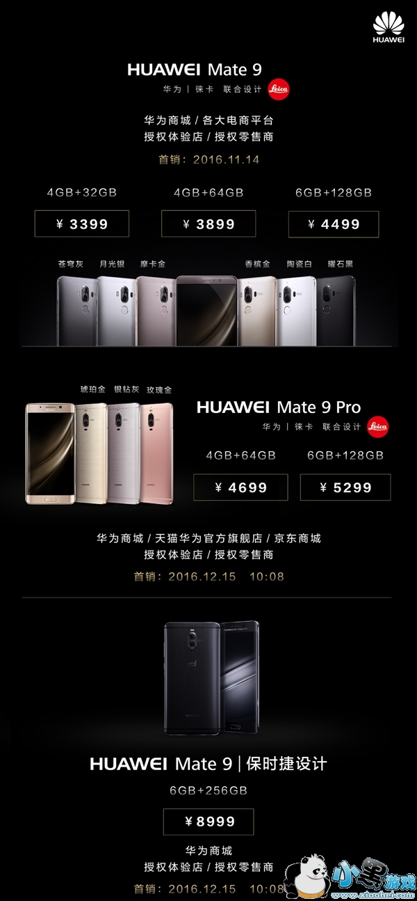 刚刚,华为终端官方微博宣布,Mate 9 Pro与Mate 9保时捷设计都将在12月15日10:08分首发,首发平台包括华为商城、天猫华为官方旗舰店、京东商城、授权体验店、授权零售商。