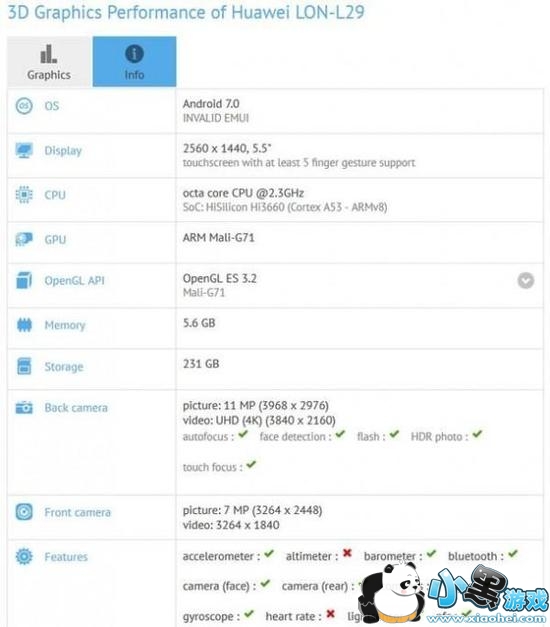 前不久华为Mate 9在德国发布,按照惯例,华为下代旗舰P10将于半年后发布,然而现在跑分网站GFXBench已经曝光了新机的配置。华为P10配备了5.5寸2K屏,搭载的是2.3GHz八核处理器(GPU是Mali-G71),型号应该就是麒麟960,同时内置6GB内存和256GB存储,至于主摄像头为1200万像素,而且应该会延续华为旗舰传统,配备徕卡双摄像头。