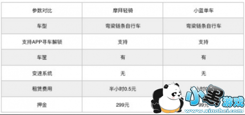 实际上摩拜轻骑版本和小蓝单车是非常相似的两款产品,我们从下面的图表上看看两款产品的主要功能对比。