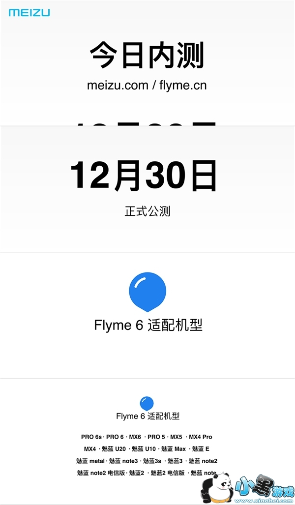 Flyme 6将同时适配魅族、魅蓝系列的20款机型,今天开放内测,12月30日开放公测体验版。