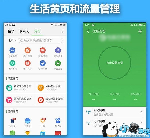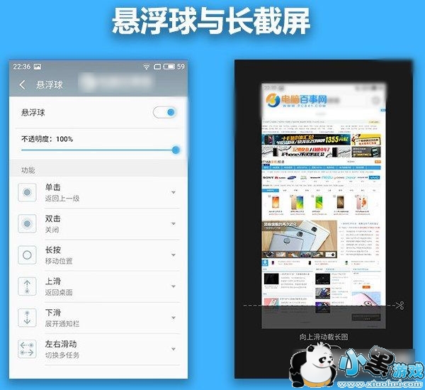 在功能方面,Flyem5.2种内置了悬浮球功能,支持长截屏功能,另外本地的生活黄页和流量管理也十分实用。