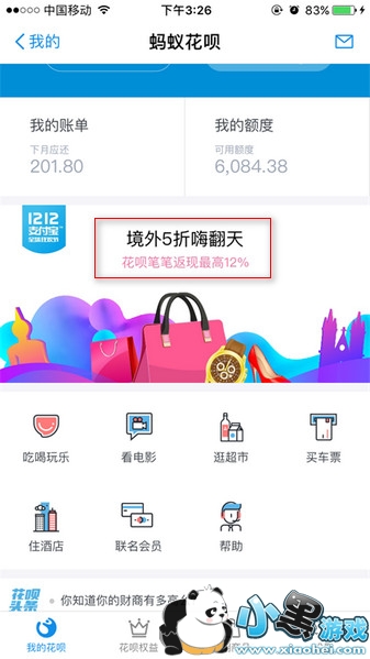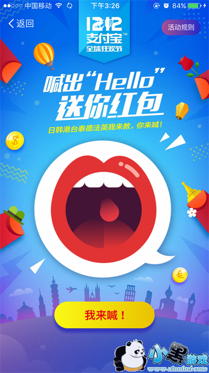 活动入口:支付宝客户端--我的--蚂蚁花呗--点击“境外5折嗨翻天”广告图进入--点击“HI红包”进入游戏页面。
