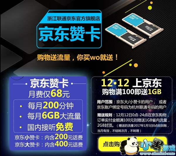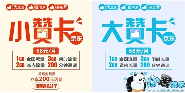 京东大赞卡/小赞卡套餐费相同,仅入网开通费用不同。