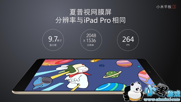 小米平板3使用的是全新9.7英寸夏普视网膜屏,屏幕分辨率与iPad Pro相当,高达2048*1536。