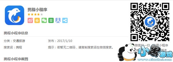 要是想查看小程序的详细内容,点击卡片就能进入小程序的详情页面。里面显示有小程序的截图、简介、用户评论。