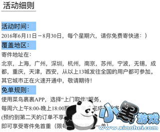 菜鸟裹裹APP周六免费规则介绍: