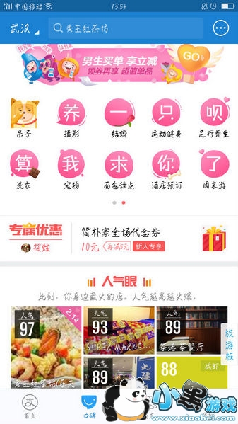 打开支付宝客户端,进入口碑页面即可看到支付宝的彩蛋,上方的分类图标变成了“要养狗吗,单身的那种”。