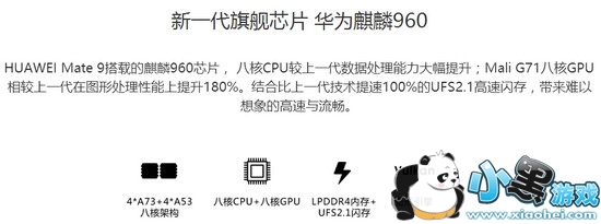 HUAWEI Mate 9搭载的麒麟960芯片, 八核CPU较上一代数据处理能力大幅提升;Mali G71八核GPU相较上一代在图形处理性能上提升180%。结合比上一代技术提速100%的UFS2.1高速闪存,带来难以想象的高速与流畅。