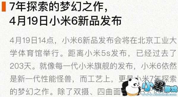 从配置来说这部小米6堪称性能巨兽,搭载骁龙835处理器,双摄像头,6GB大运存等,即使和刚刚发布的三星S8相比,这部机器也和其不相上下,至于外观和手感能否达到S8那种高度,至于价格方面,这也是许多消费者比较看重的一点,作为互联网手机的开辟者,小米手机一直性价比极高,但是考虑到今年国产手机普遍涨价,小米6若是定价到3000左右也可以理解,这一次小米6的定价应该会决定后续魅族,一加,ZUK等旗舰机型的定价。