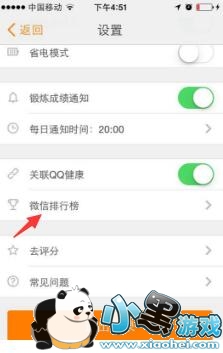 ②在设置中找到微信排行榜,点击进入微信排行榜,会出现乐动力的微信