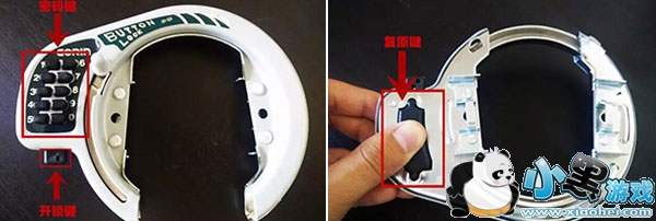 键盘锁关锁:①先输入密码;②然后按下密码盘下方的按钮,即可成功开锁。