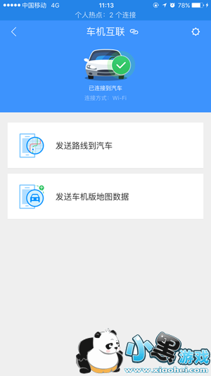 3、接着进入【工具箱】选择【连接汽车】。成功后进入下图页面,选择将手机版的离线数据发送给车机版(工具箱和数据发送界面如上图)。