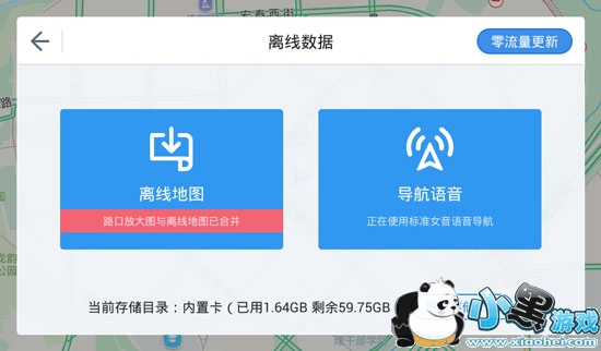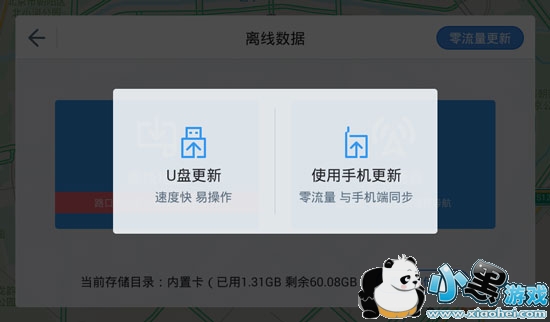 2、接着选择进入高德地图车机版app的【离线数据】页面,点击零流量更新,选择【U盘更新】。