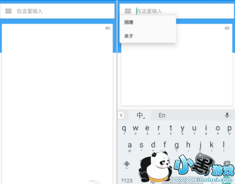 这款快速搜索App的使用很简单,安装后开启,就可以看到搜索界面。除了搜索界面,就再也没有别的元素了,点开菜单也只是弹出捐赠之类的选项。只要在搜索框中输入内容,就可以直接搜索。
