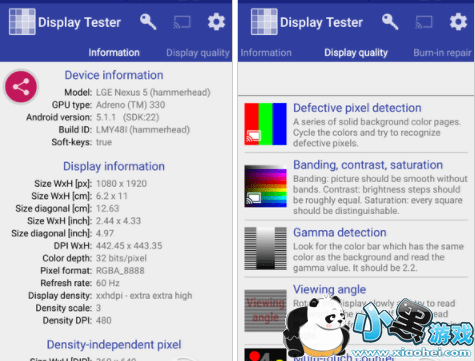 Display Tester就是一款非常专业的、令你能够轻松看到手机屏幕瑕疵的App。Display Tester翻译成中文就是屏幕测试器,它的使用非常简单。Display Tester并不支持中文,但好在功能简单易懂,开启App后,即可看到各种手机屏幕测试项目。Display Tester非常强大,附带了三原色、灰阶、Gamma值、可视角度等测试项目,手机屏幕是否有坏点,背光是否均匀,胶水贴合是否完美有没有出现阴阳屏,一目了然。