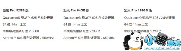 处理器方面标准版采用的是高通625处理器,这是一款表现非常不错的处理器,高配版与顶配版则采用它的升级款高通626,从参数上来看,最主要的区别就是提升了主频,变为2.2GHZ。