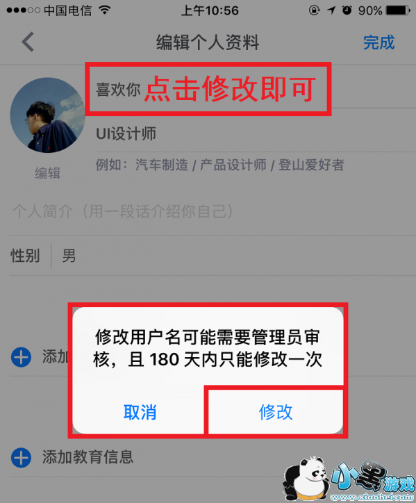 - ⒋ 输入希望修改的昵称/姓名即可;